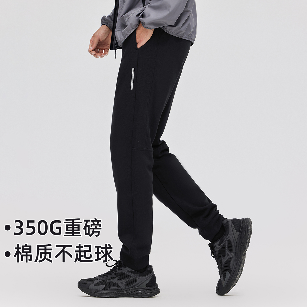 拓路者春款简约休闲裤男针织直筒百搭裤子拉链口袋运动裤纯色卫裤