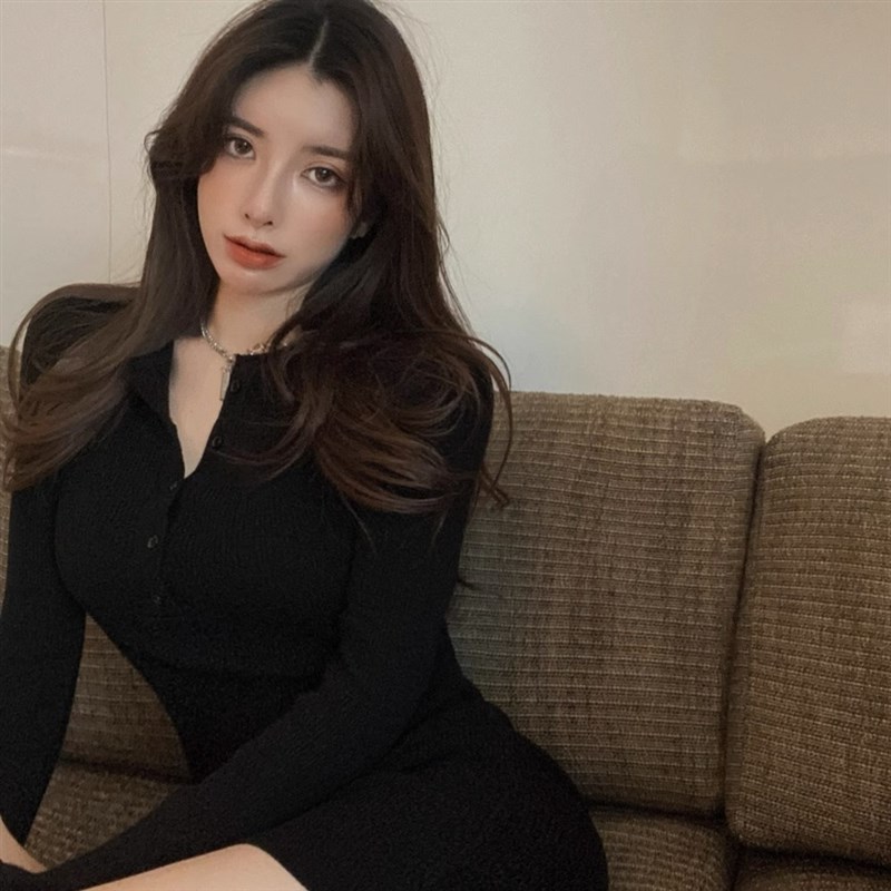 黑色针织内搭连衣裙女辣妹秋冬包臀裙子冬季紧身性感纯欲套装