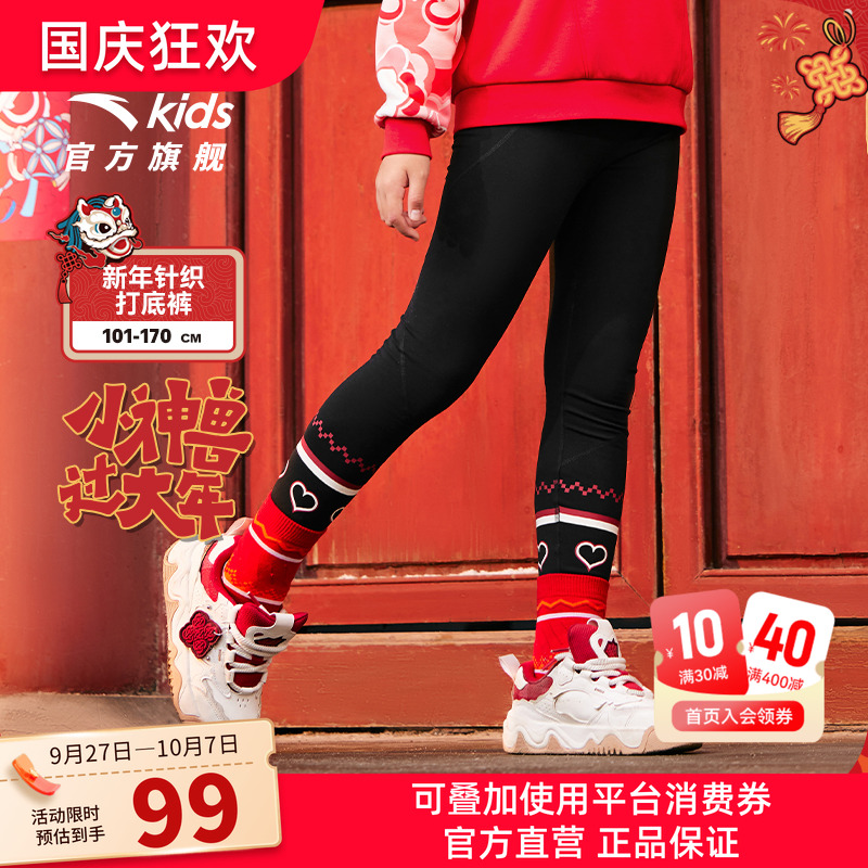安踏儿童女童加绒打底裤2025秋季新款舒适高弹儿童新年红色女长裤