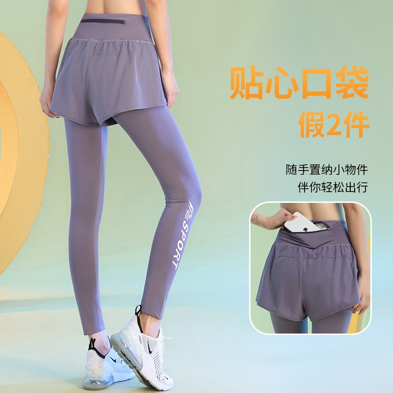 高弹力假两件运动裤女显瘦瑜伽裤秋冬款紧身外穿跑步训练健身长裤