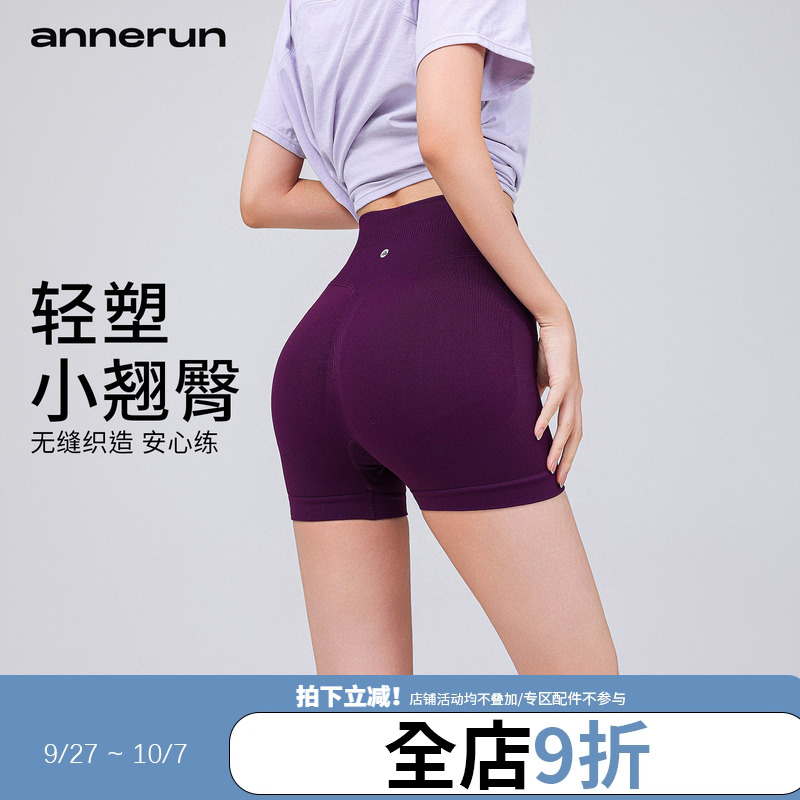 annerun紧身运动短裤女防走光瑜伽裤提臀热裤跳绳跳操健身三分裤