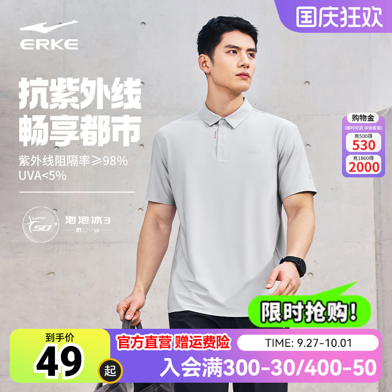 鸿星尔克POLO衫短袖男2025秋季新款男士运动冰丝防晒翻领t恤男款