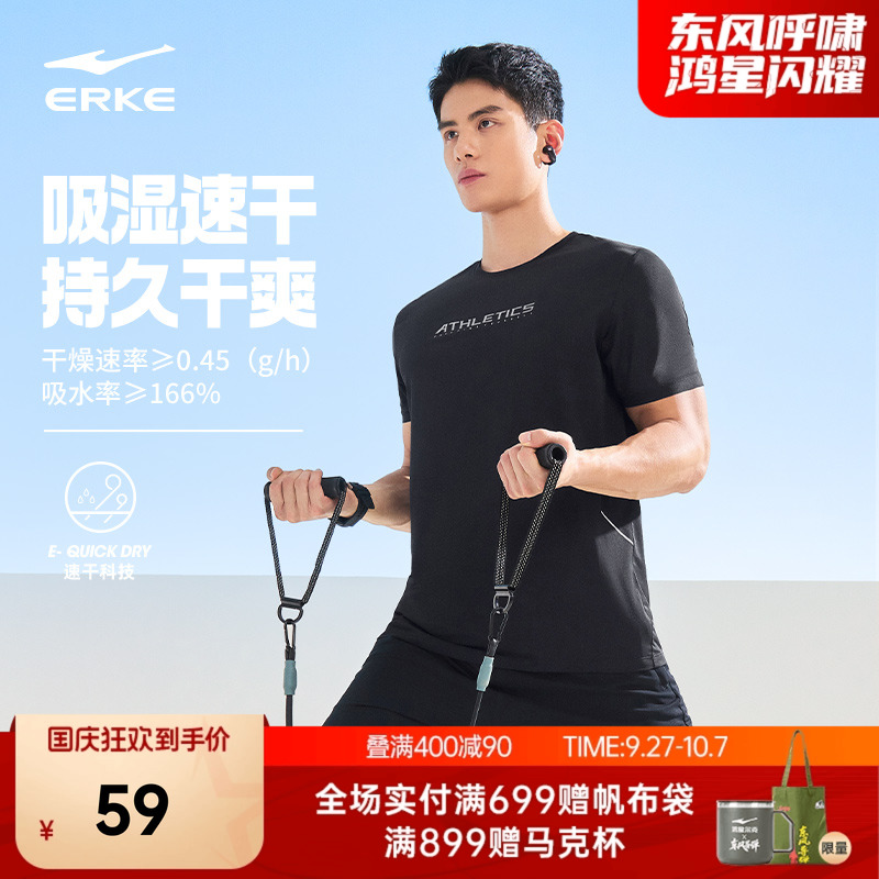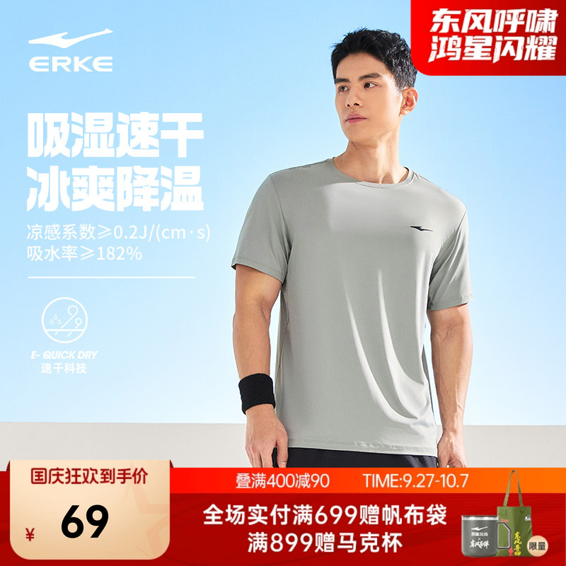 鸿星尔克速干男t恤夏季新款男士短袖运动上衣羽毛球服冰丝速干衣