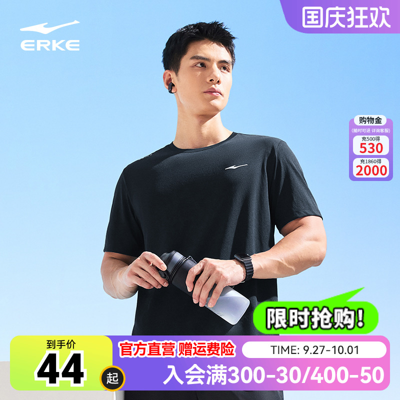 鸿星尔克短袖男秋季新款男士跑步透气冰丝速干衣t恤男生运动上衣