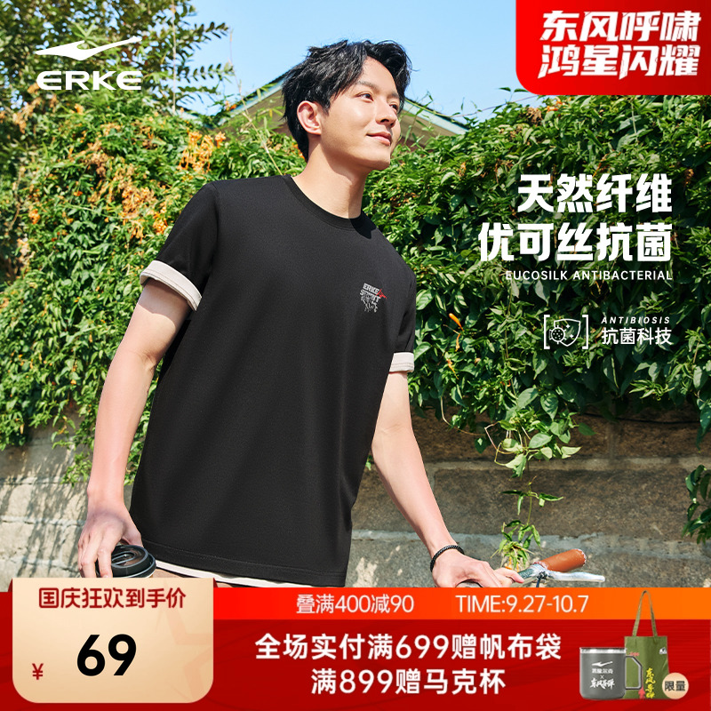 鸿星尔克国潮短袖男2025夏季新款男士优可丝抗菌运动宽松透气t恤