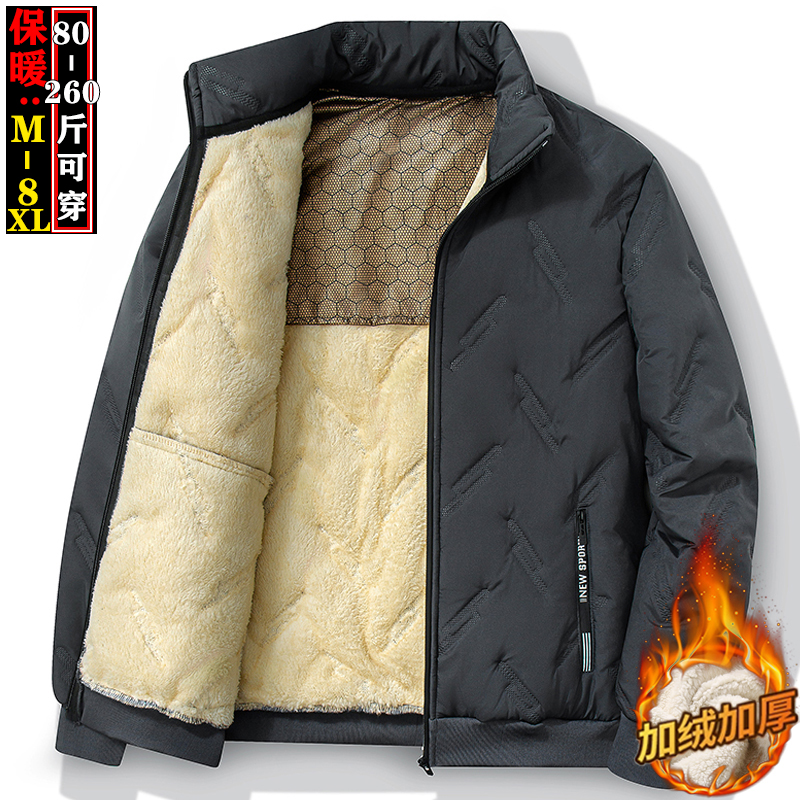 加绒加厚棉衣男士冬季羽绒羊羔绒7XL大码运动外套防风保暖衣棉服