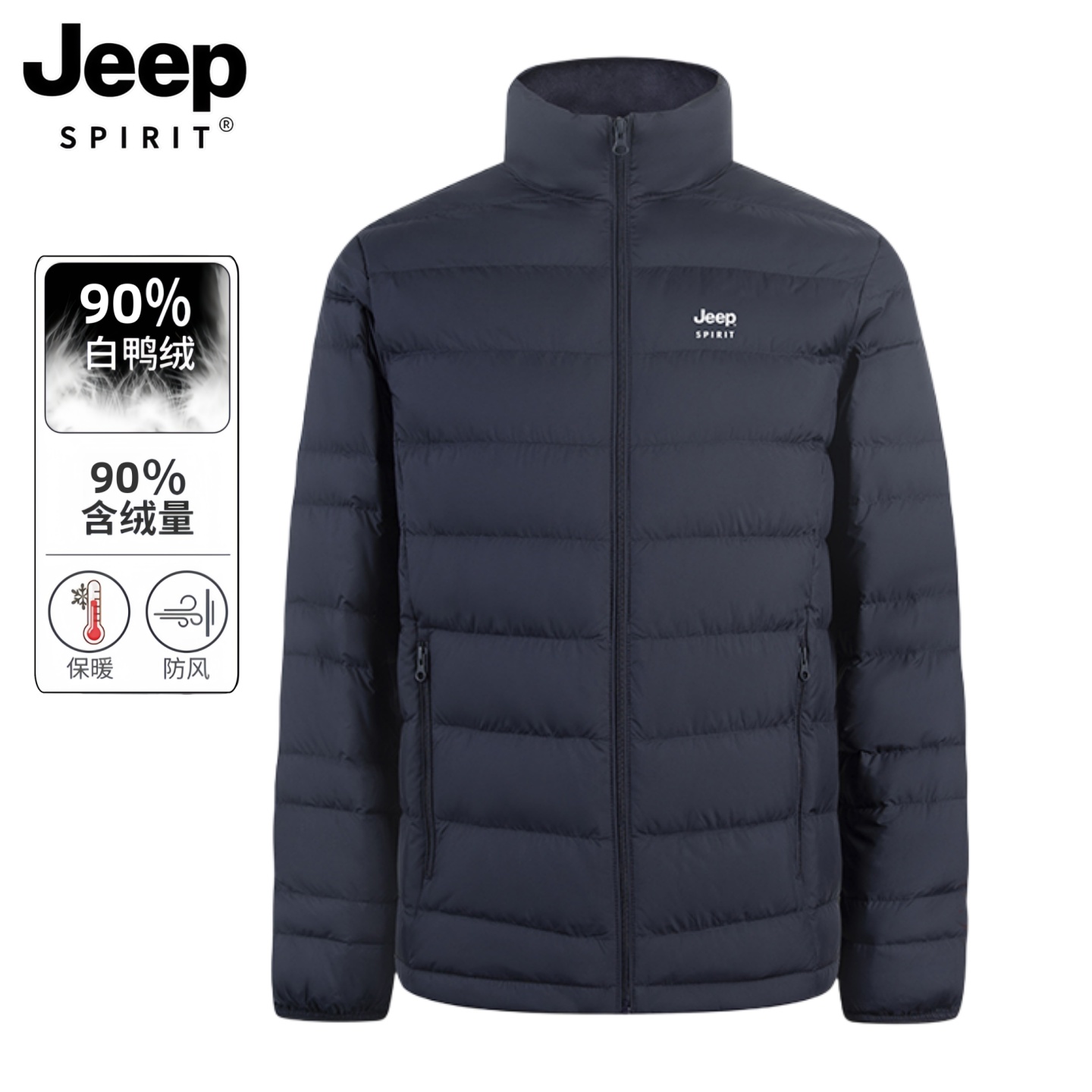 吉普轻薄羽绒服男2025冬季新款大码宽松爸爸男装短款立领鸭绒外套
