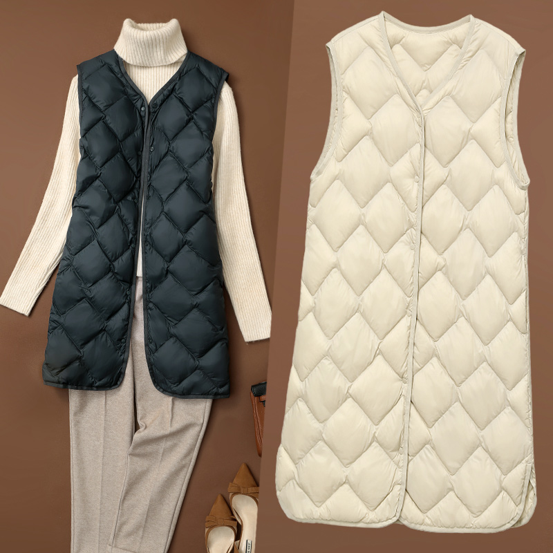 2025秋冬戴帽轻薄款羽绒马甲女中长款修身大码运动羽绒服内胆背心