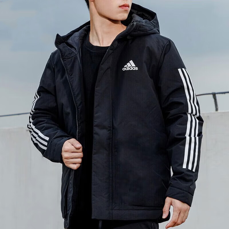 600蓬休闲保暖鸭绒连帽羽绒服男装秋冬新款adidas阿迪达斯轻运动