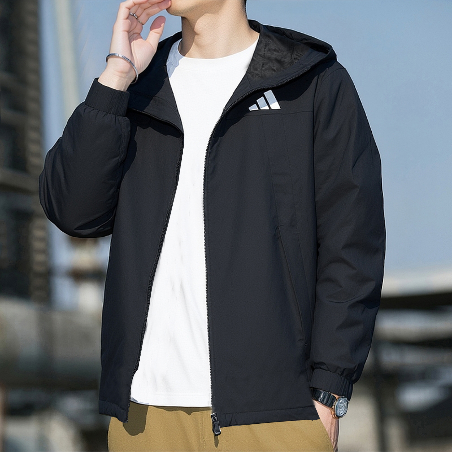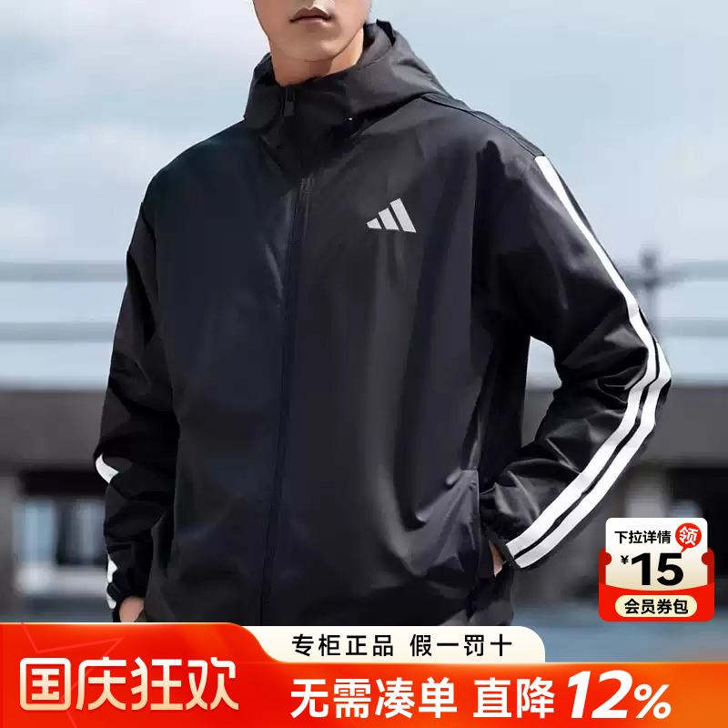 阿迪达斯外套男装梭织连帽运动服秋季防风登山跑步健身训练夹克