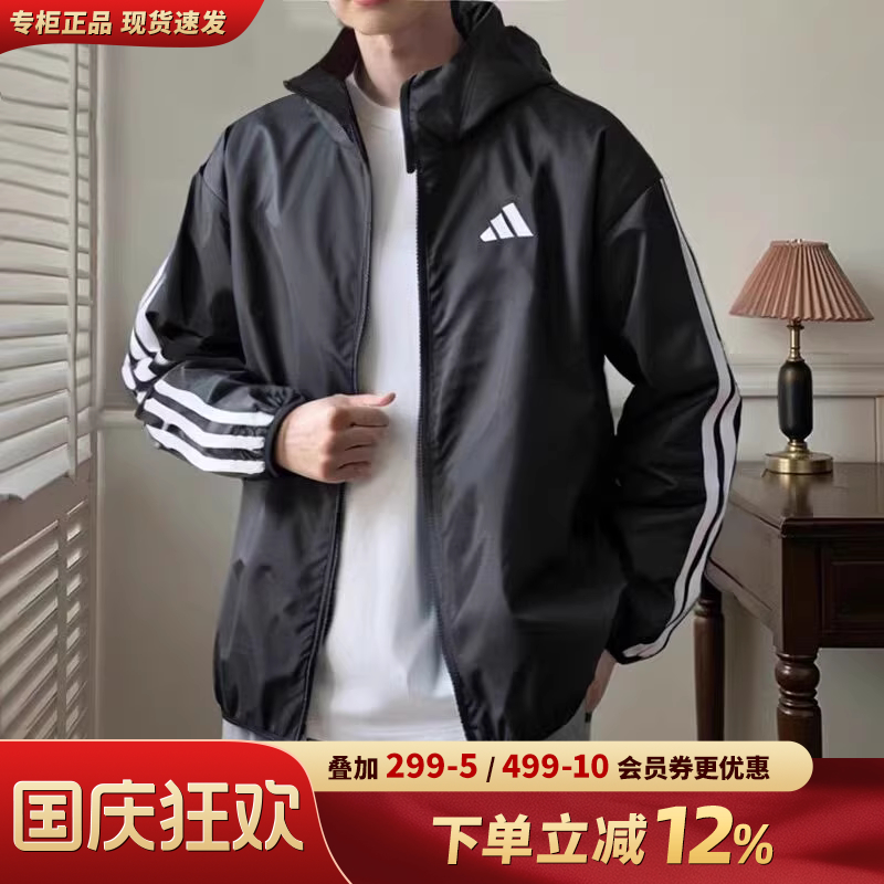 阿迪达斯夹克男装秋季新款运动服立领开衫男士休闲透气梭织外套