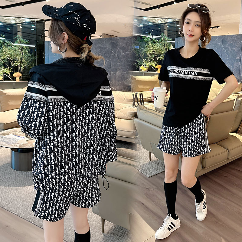 运动套装女新款瑜伽服跑步健身速干衣大码短袖两件套防走光三分