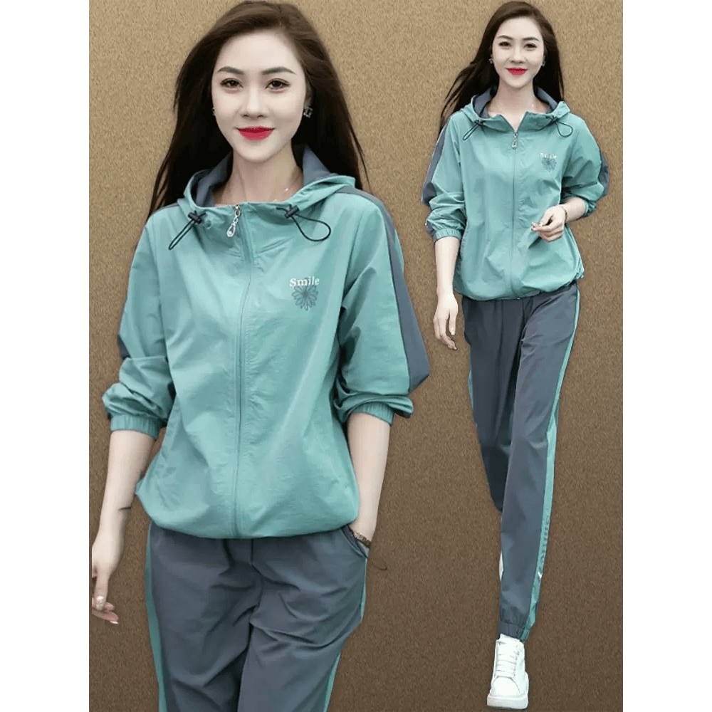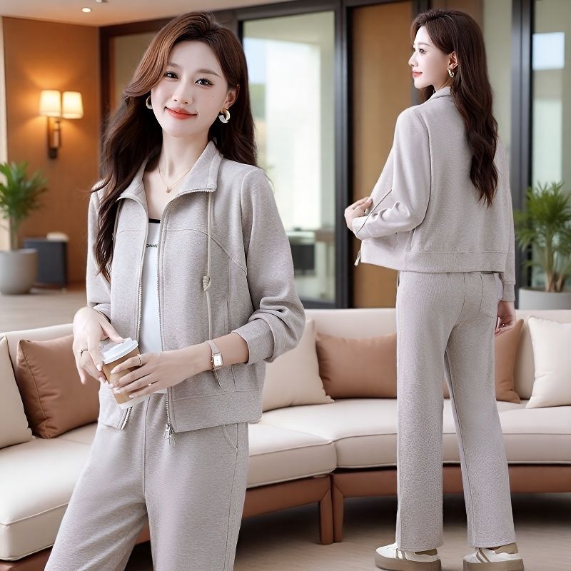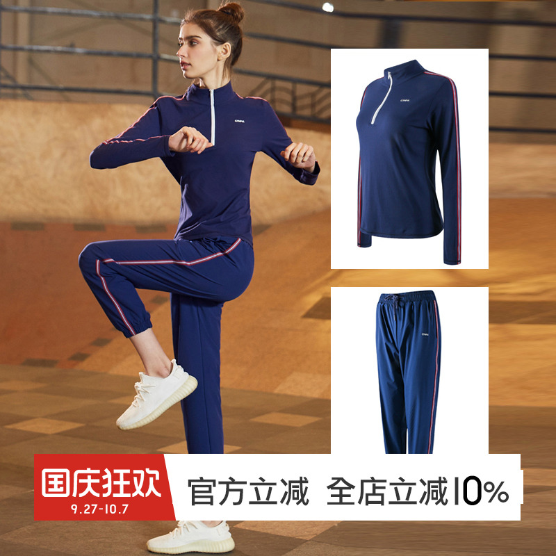 GYMNA春季健身休闲两件套跑步训练服新品运动套装女拉链卫衣长裤
