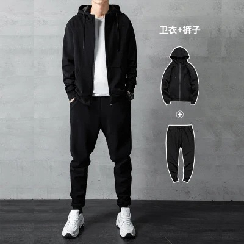 2025年新品休闲运动服套装男士春秋青年开衫连帽卫衣跑步服
