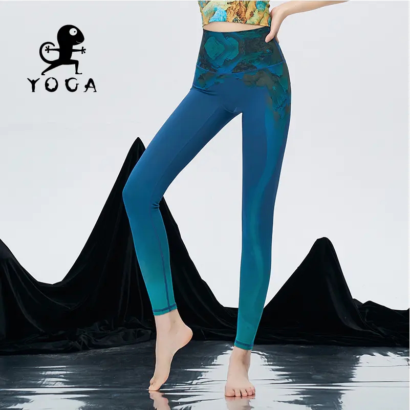 壁虎瑜伽服彩色印花女花色瑜伽裤春夏国风健身裤高腰显瘦长裤