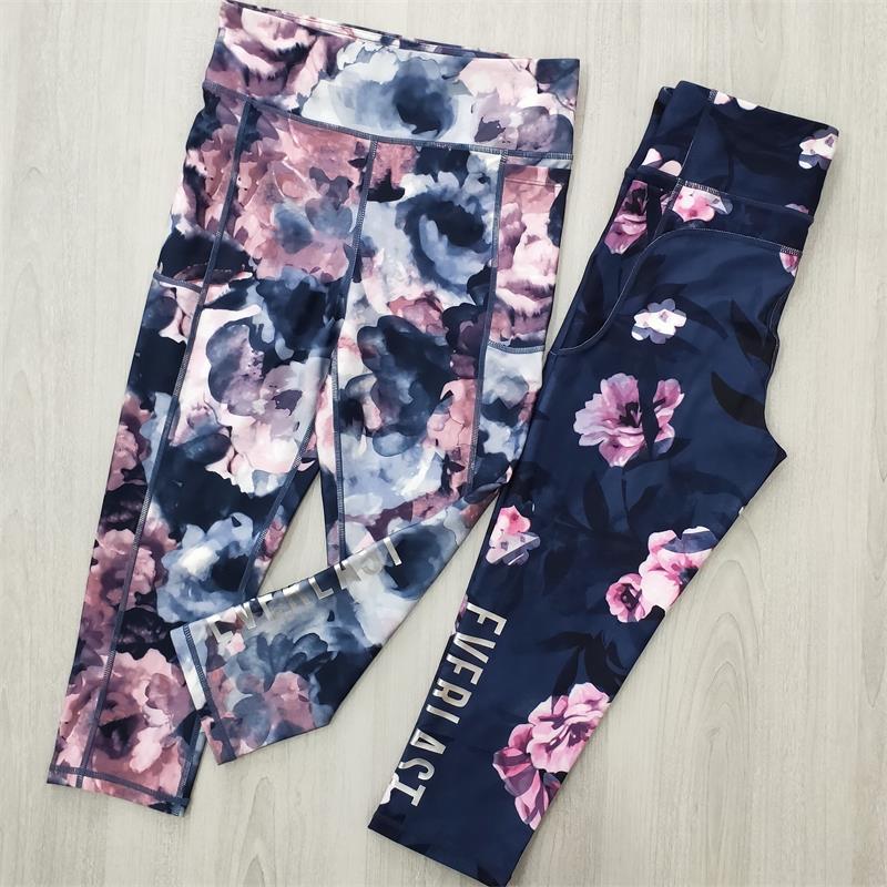 新款外单春夏秋花色速干弹力透气户外跑步健身运动瑜伽七分八分裤