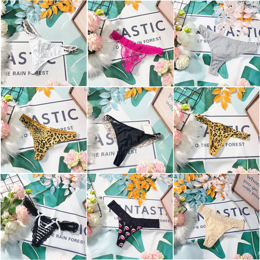 X311 性感棉蕾丝边花色细带美臀丁字裤女生T-Back瑜伽健身底裤