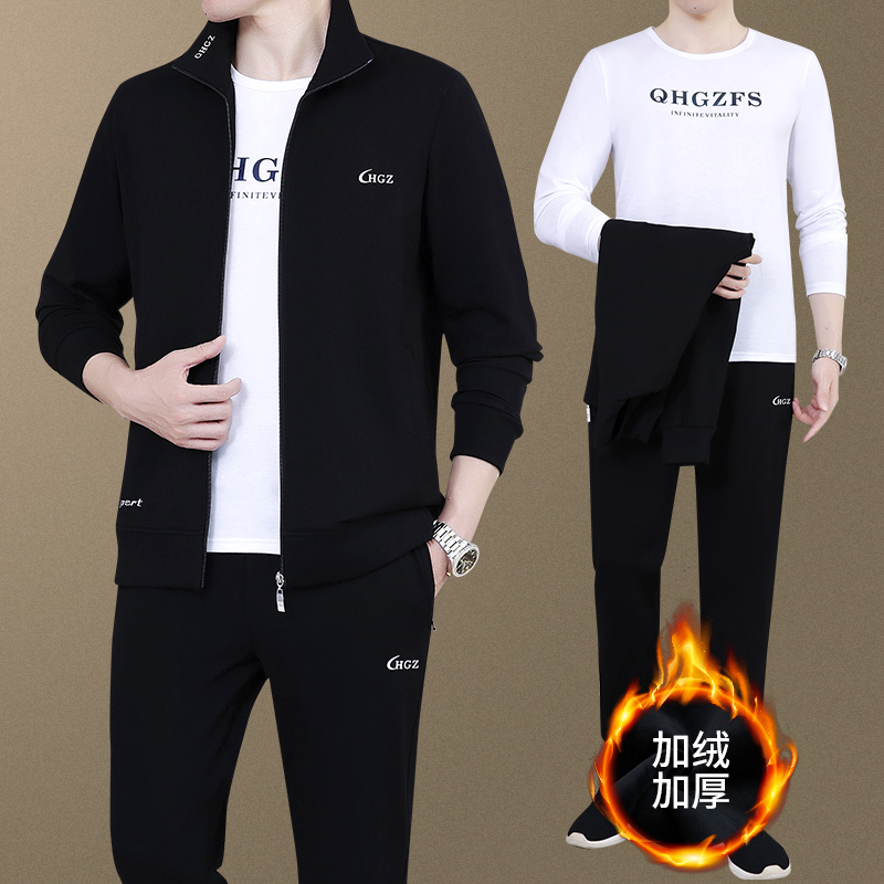 中老年运动套装男春秋冬季加绒三件套爸爸休闲宽松中年男士运动服