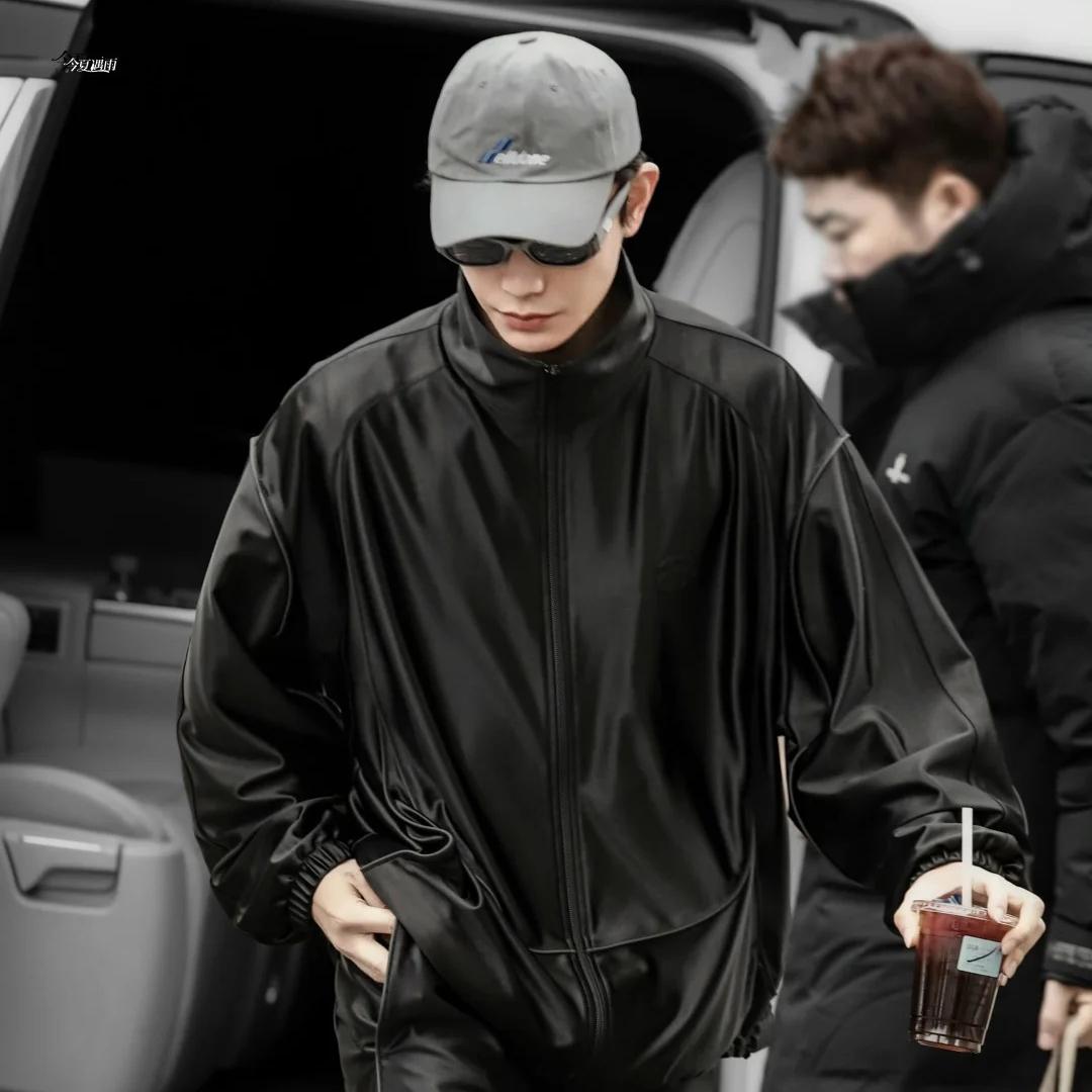 海外购丁禹兮明星同款衣服立领拉链长袖夹克外套男休闲运动套装男
