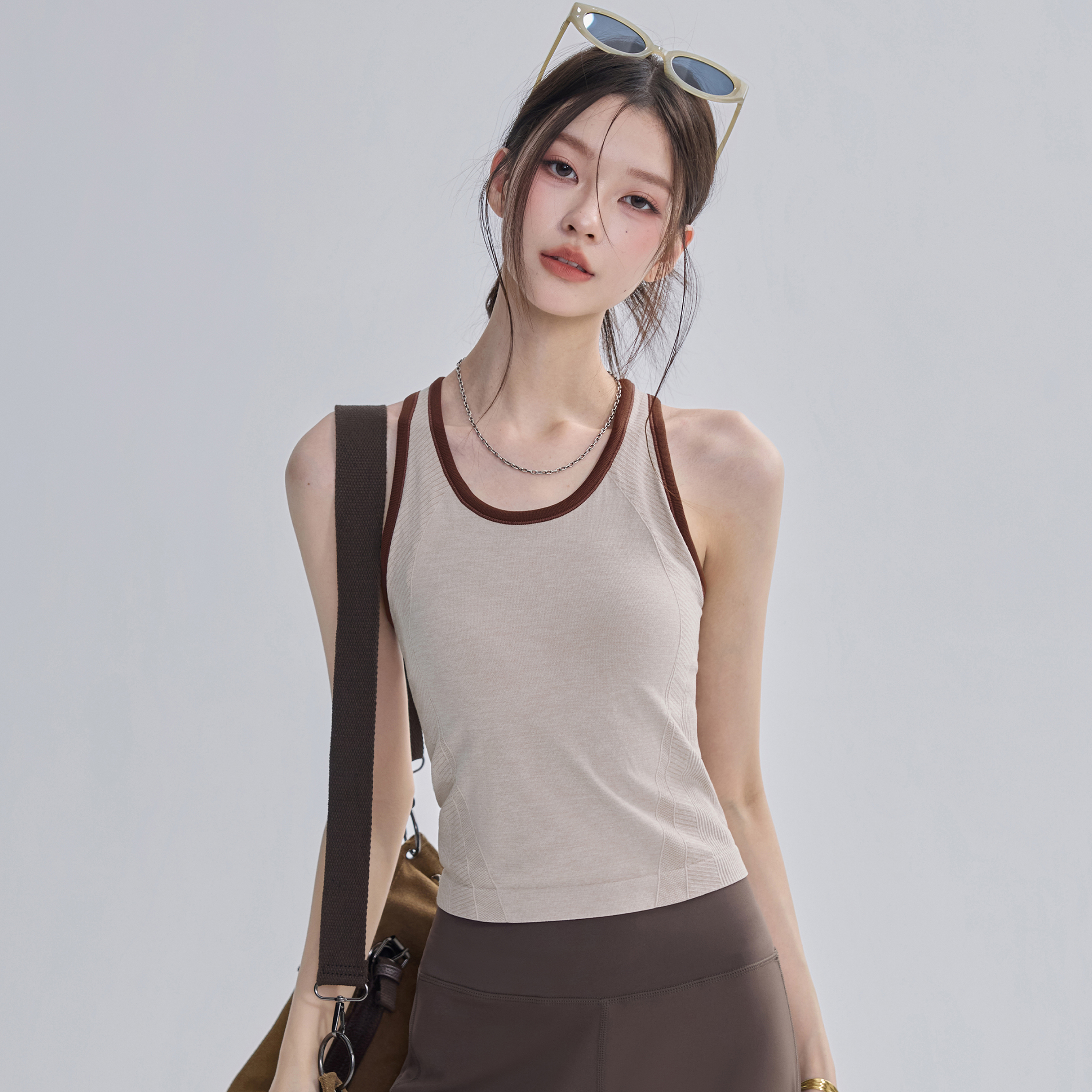 悠美YOGA带胸垫瑜伽服背心工字美背运动内衣无袖速干普拉提上衣夏