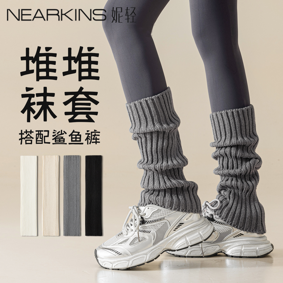 堆堆袜配鲨鱼裤袜套女灰色腿套秋冬季针织中筒小腿长袜子胖mm粗腿