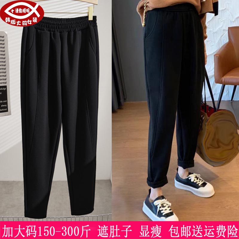 夏季薄款大码显瘦休闲哈伦裤七分裤韩版胖MM女小腿裤松紧腰直筒裤