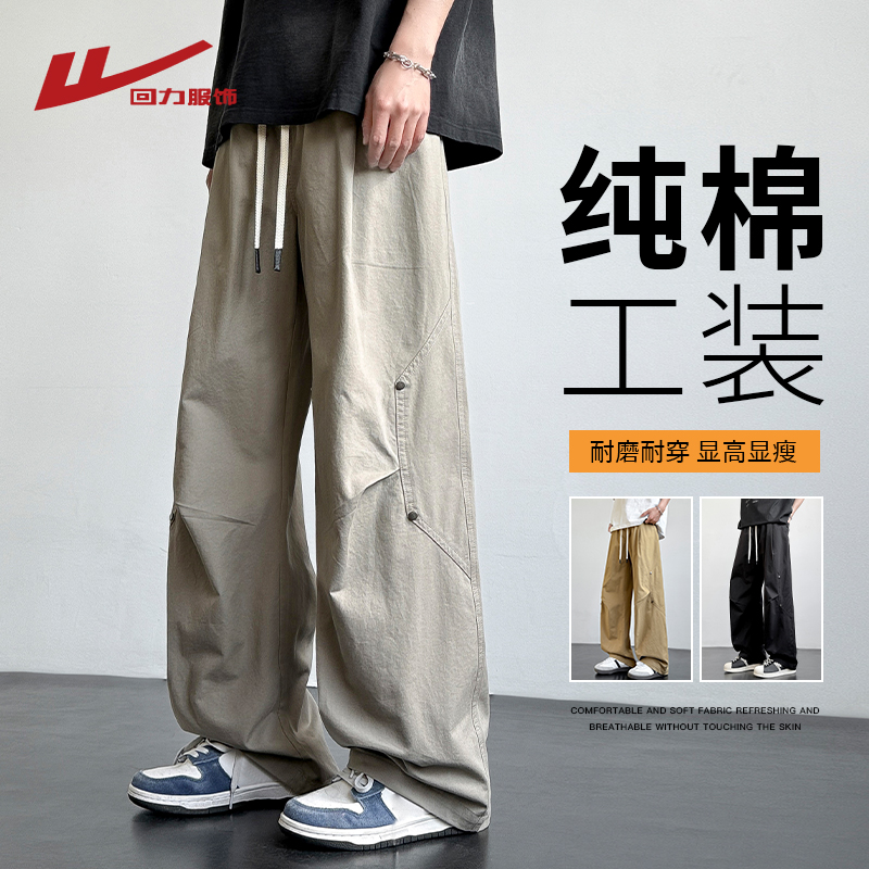 吾一白春秋2025新款男生美式休闲工装休闲裤男士宽松阔腿运动长裤