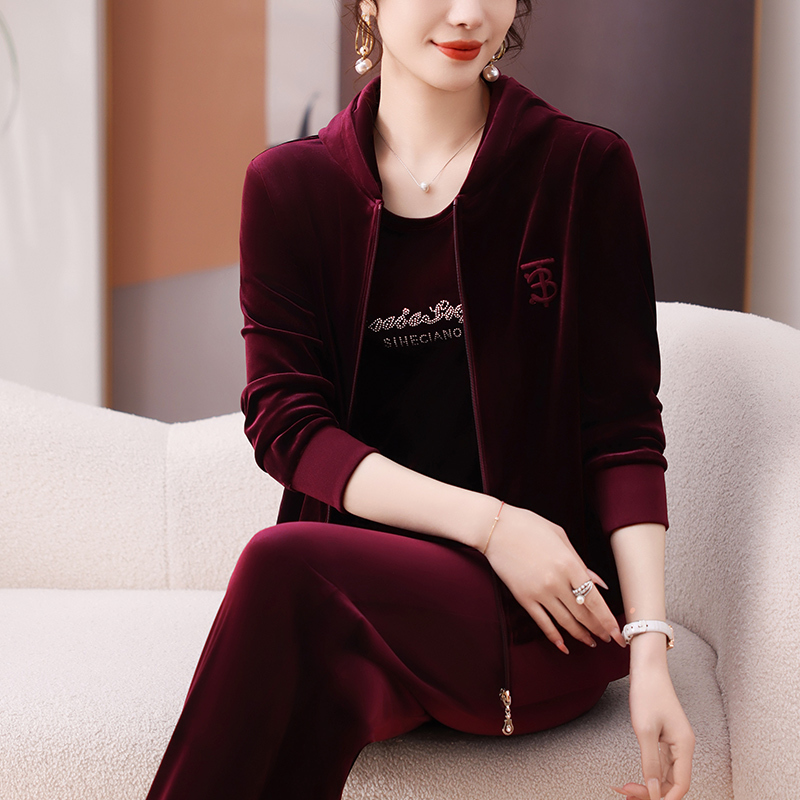 中年妈妈秋装金丝绒休闲运动套装新款中老年人女装春秋洋气两件套