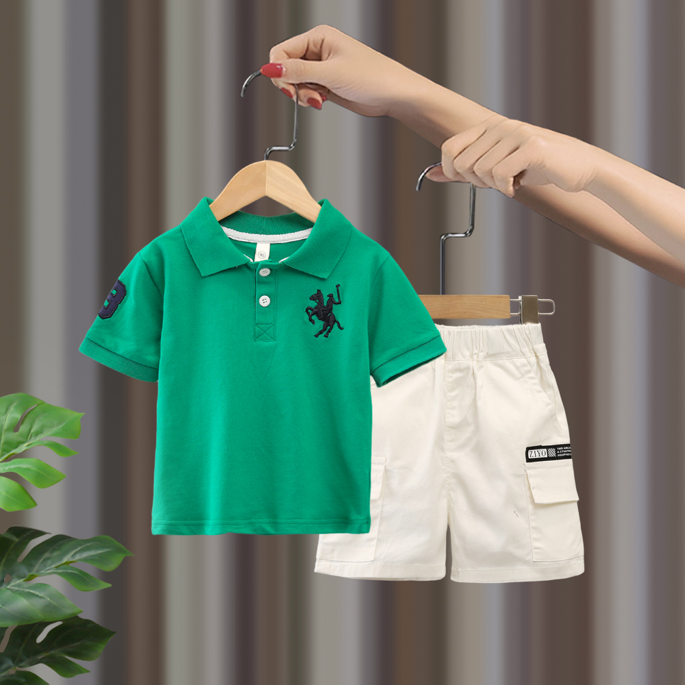 男童夏装套装2023夏季新款小童男宝宝时尚短袖polo衫两件套潮