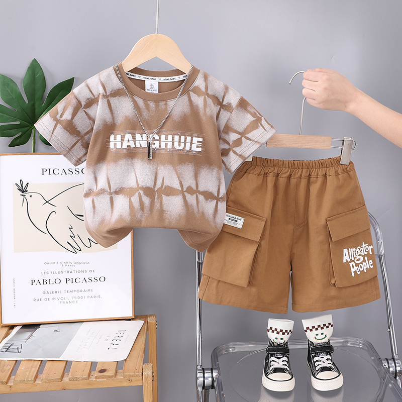 纯棉男童套装夏季新款2025儿童短袖t恤薄款休闲裤子时尚两件套装