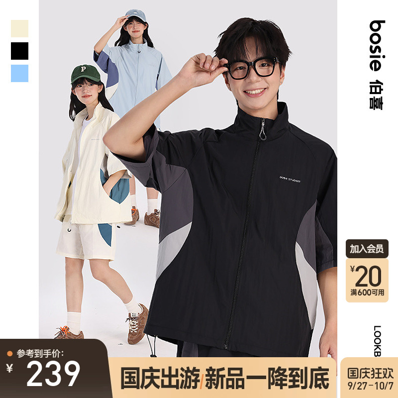 bosie2025夏季新款时尚套装男情侣款拼接撞色冰丝宽松短袖两件套