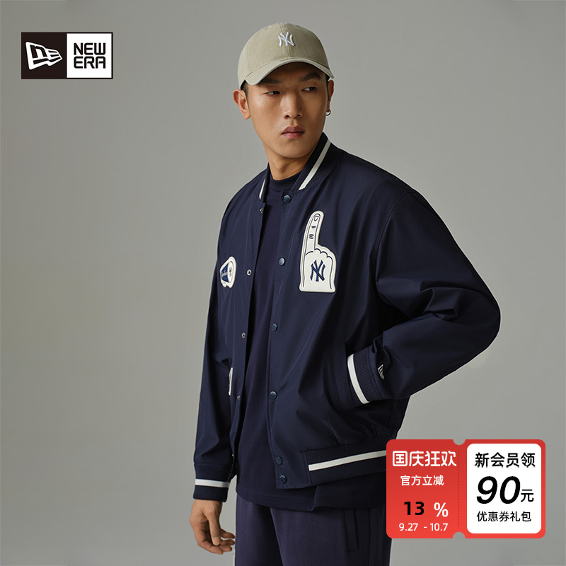New Era纽亦华秋冬新款MLB梭织夹克徽章NY外套情侣休闲男女棒球服