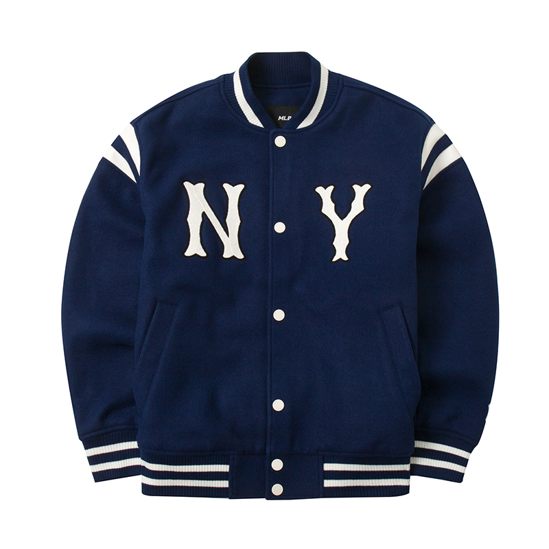 24新款MLB情侣棒球服男女NY复古学院风运动休闲羊毛外套3AJPV0141