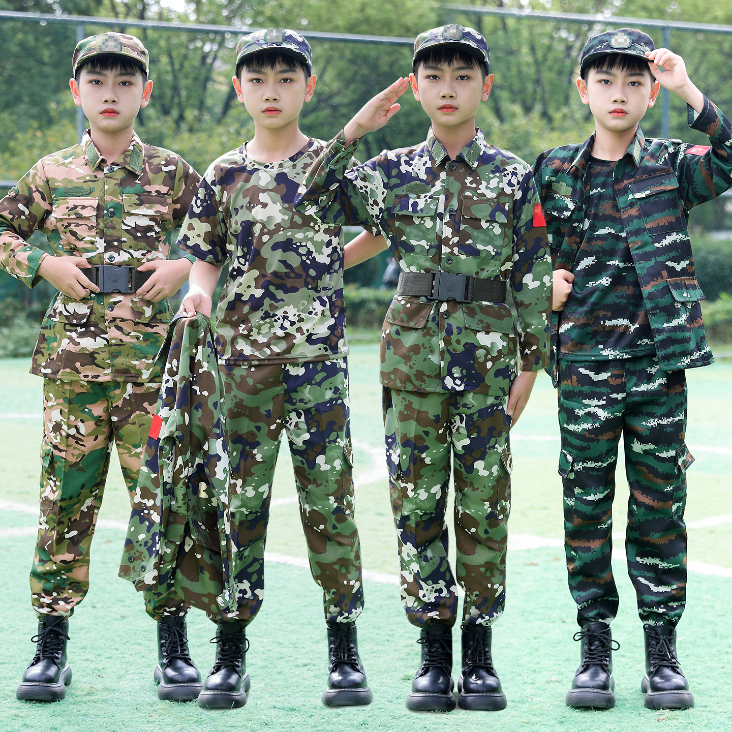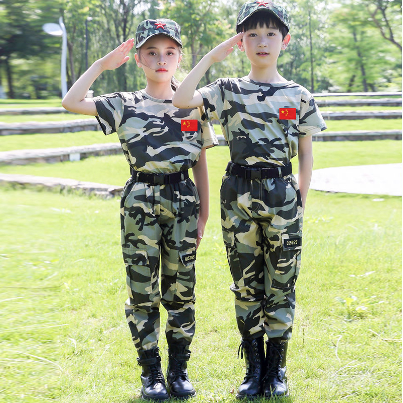 儿童迷彩服套装男女童学生演出服军训服装春秋薄款运动短袖夏令营