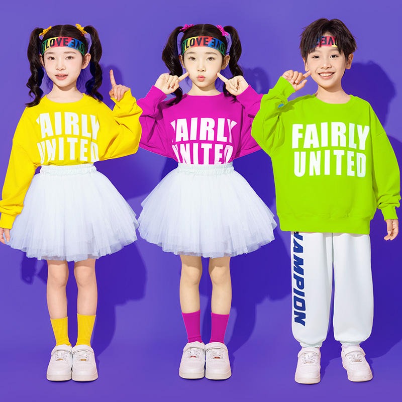 小学生运动会啦啦队服装儿童街舞潮服演出服男女童爵士舞街舞套装