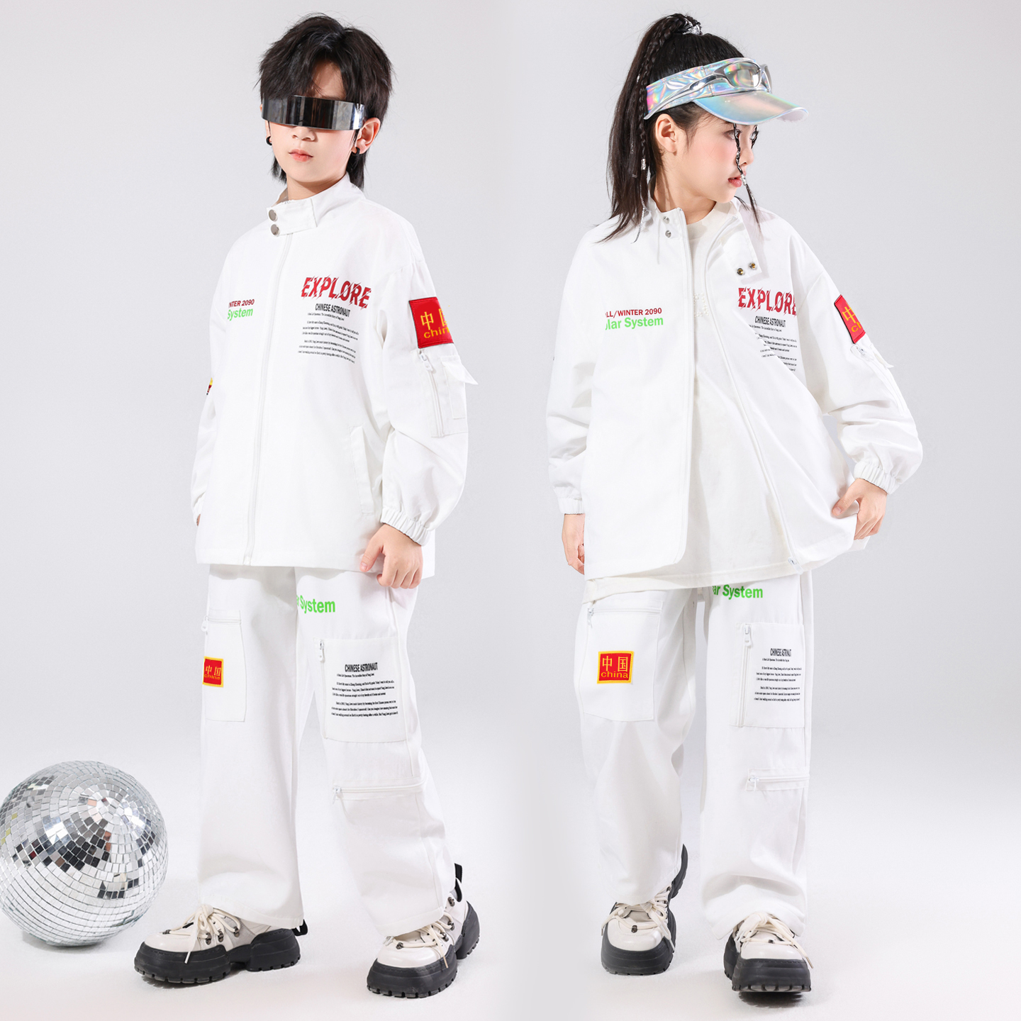 儿童嘻哈街舞HIPHOP演出服男女小学生秋季运动会白色班服队服套装