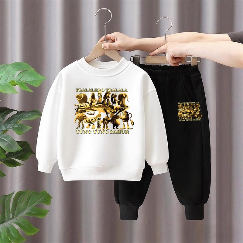 儿童拉布布卫衣套装秋冬季新款男女童加绒上衣长裤大童运动两件套