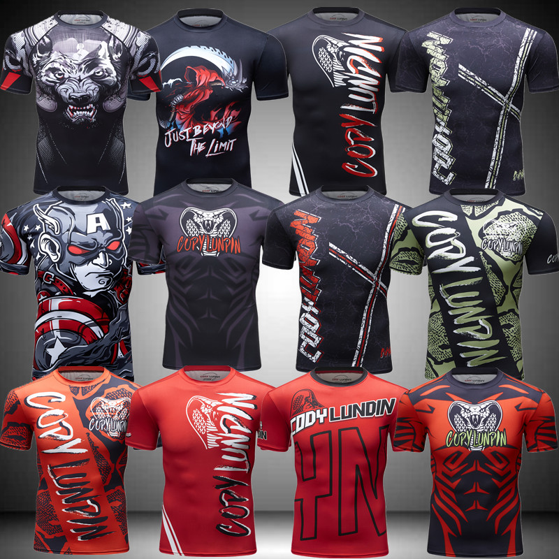 MMA运动男健身短袖T恤狼人防磨f服柔术速干跑步训练紧身压缩衣pro
