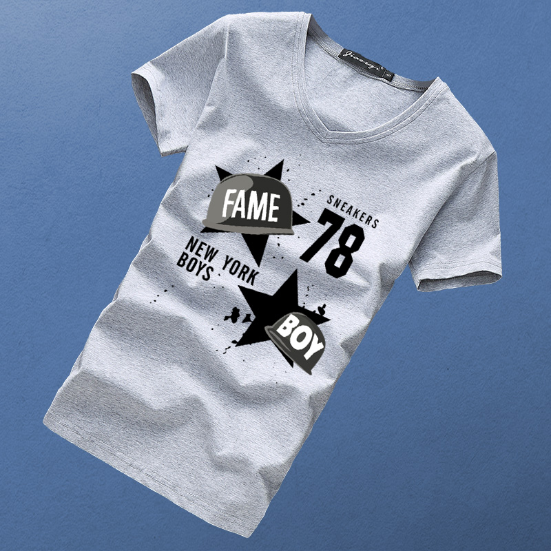 夏季新款短袖t恤男士V领韩版潮牌运动大码宽松半袖纯棉体恤打底衫