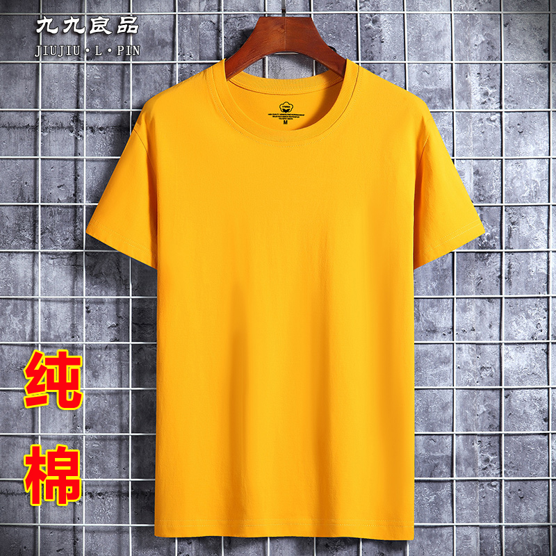 韩版潮流短袖t恤男夏季纯棉运动休闲体恤半袖汗衫纯色上衣女 黄色