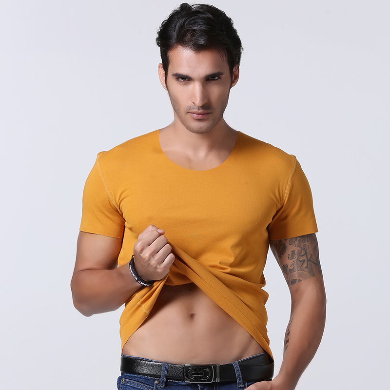 纯棉无痕短袖男圆领韩版t恤运动紧身半袖纯色打底衫男士体恤大码