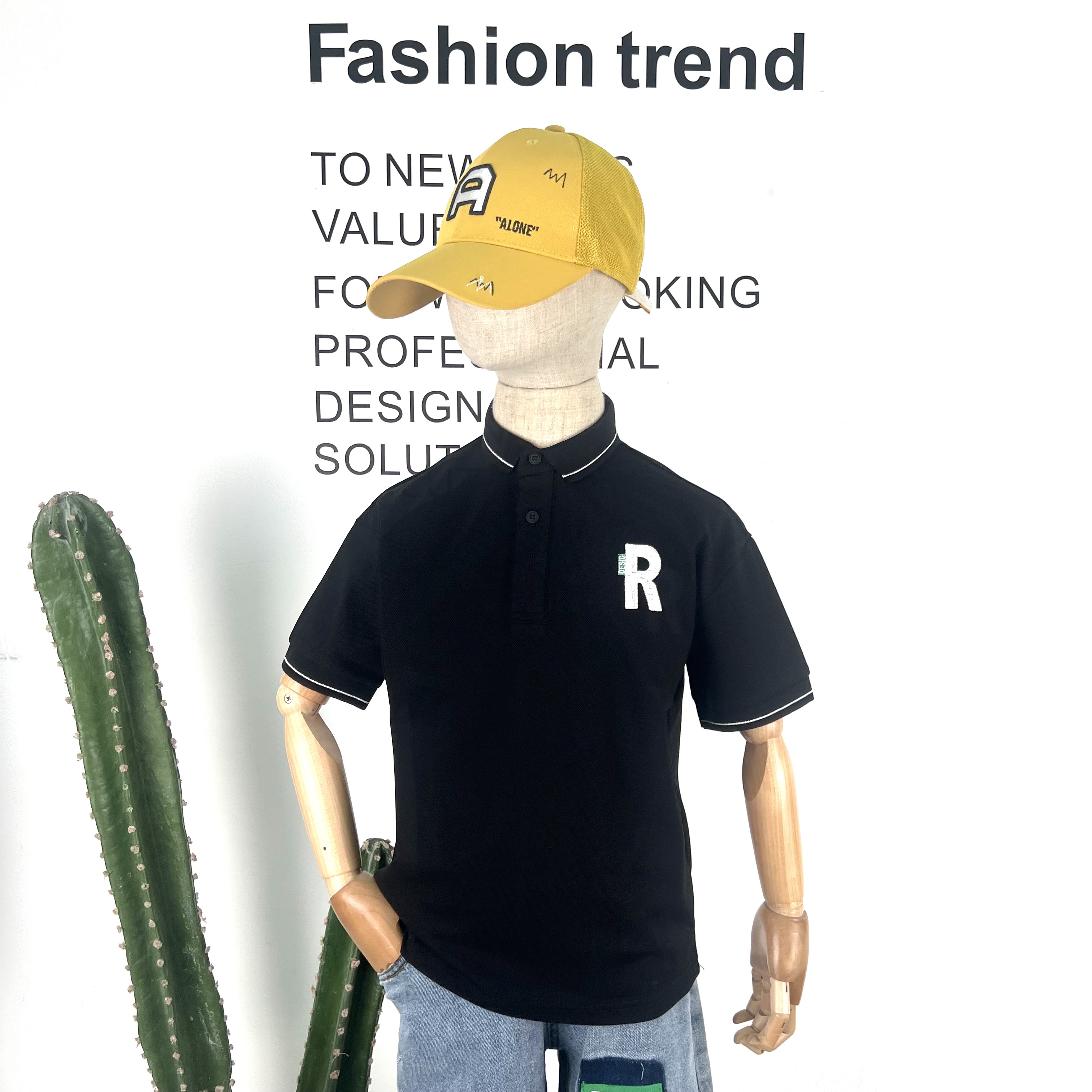 KERWATS韩版潮流英文字母胸花翻领t恤春季休闲运动短袖polo衫男