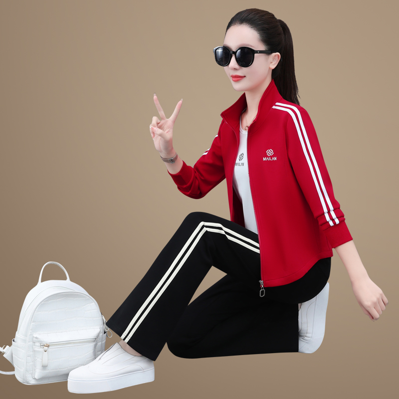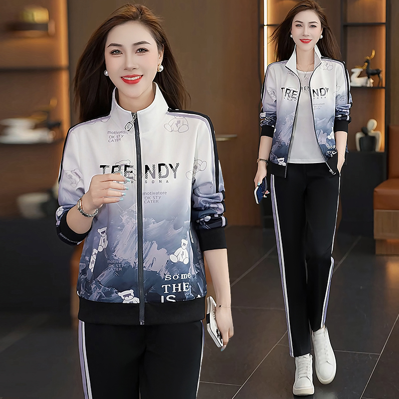 妈妈春秋装休闲运动服套装女外套秋天中老年人洋气宽松上衣三件套