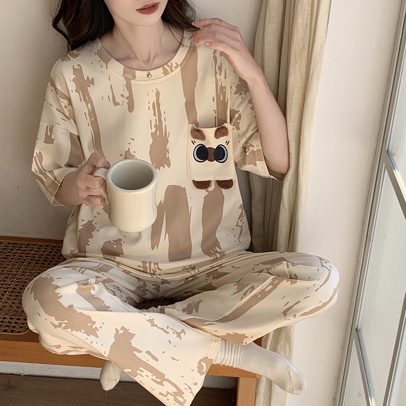 夏季短袖睡衣套装女长裤家居服春秋天薄款学生可外穿卡通休闲运动