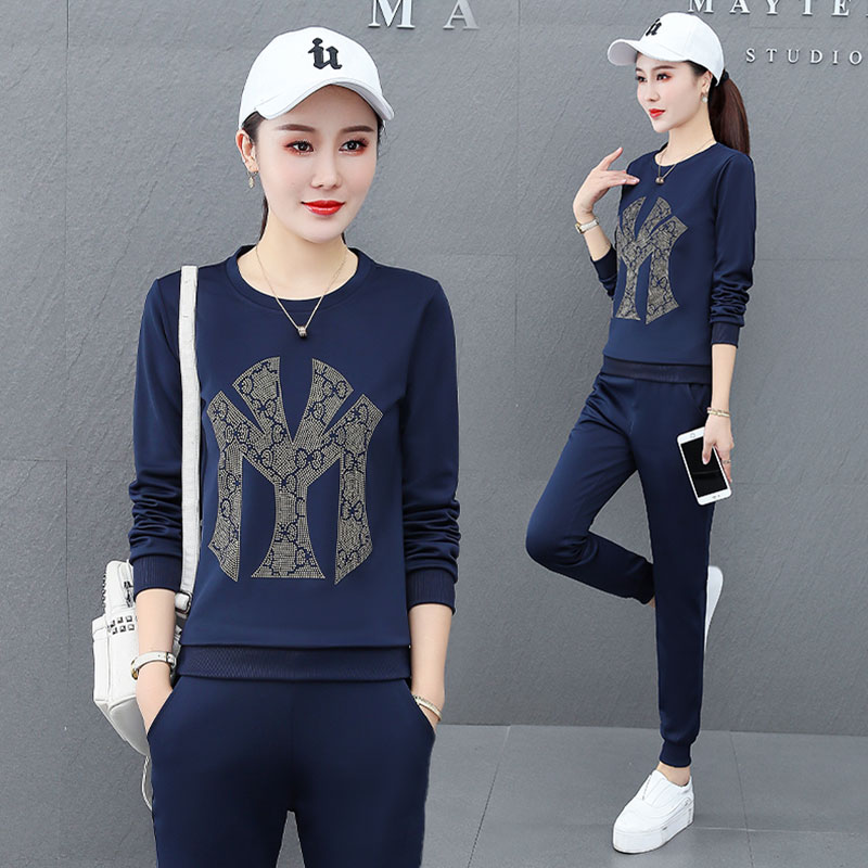 2025春秋天鹅绒运动套装女修身休闲运动套装金丝绒烫钻套装女两件