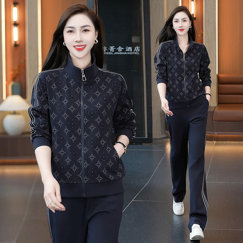 2025春秋天鹅绒时尚运动套装女 拉链烫钻 宽松直筒休闲服店主推荐