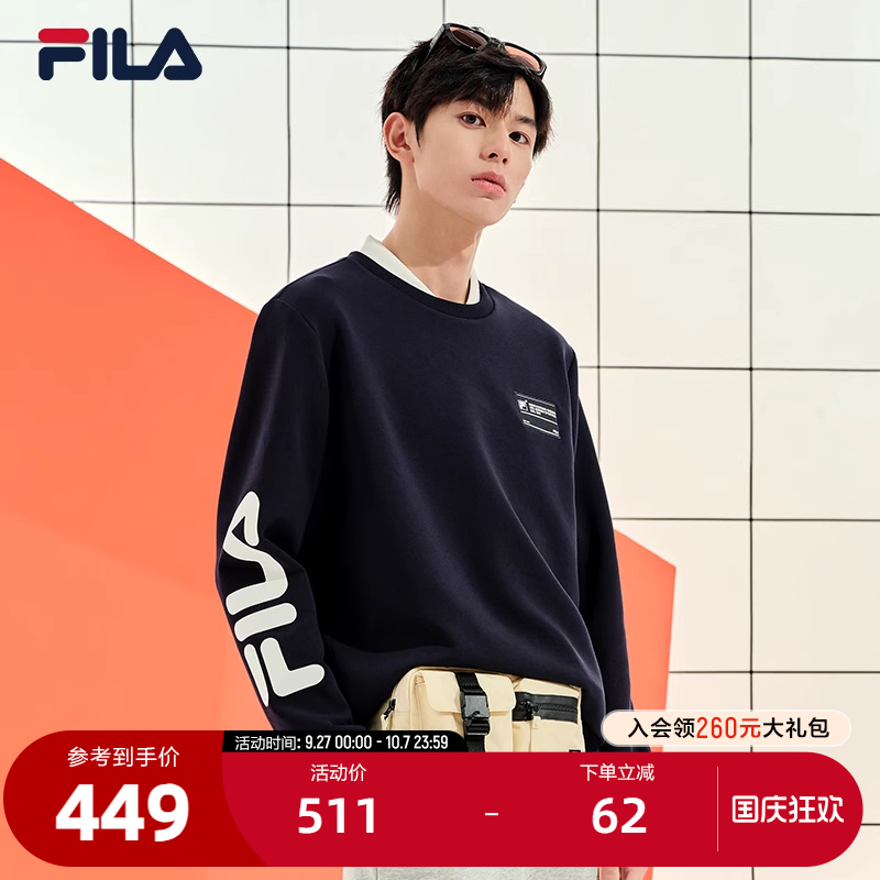 FILA斐乐官方正品卫衣男2025秋季圆领套头衫百搭刺绣运动长袖上衣