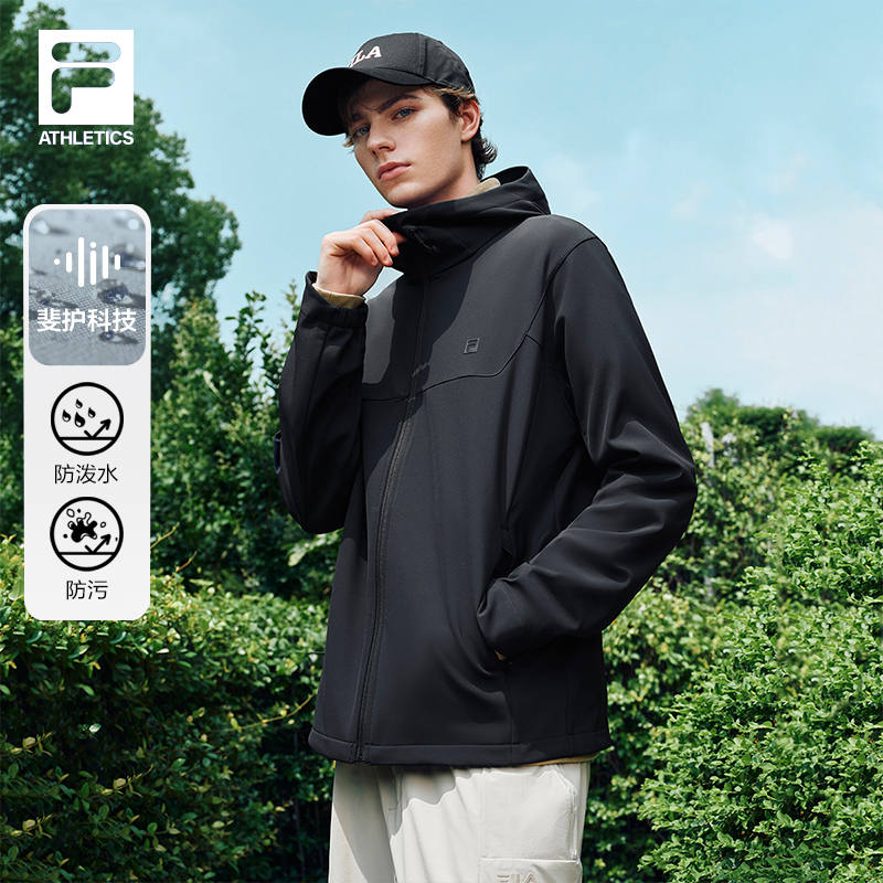 FILA斐乐官方男上衣25冬新健身运动跑步防泼水软壳衣加绒连帽外套