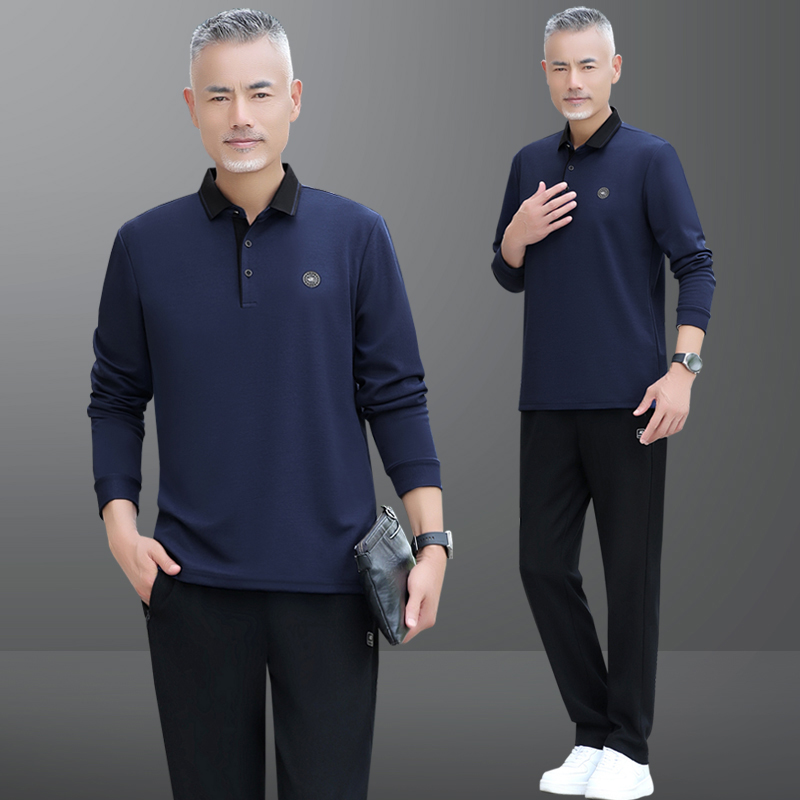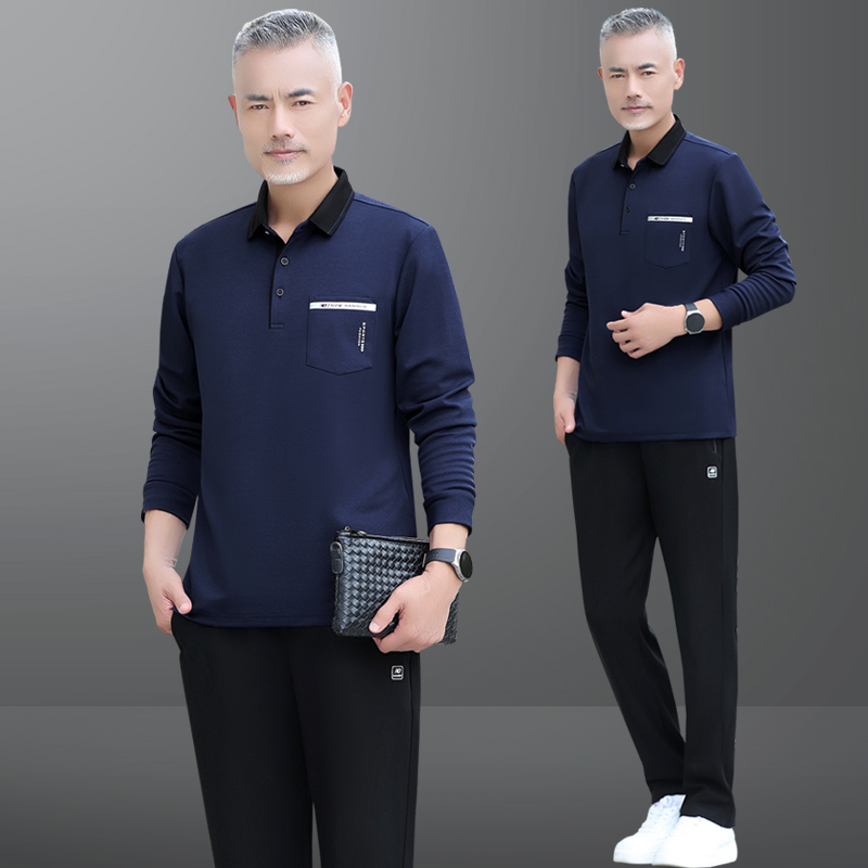 中老年运动服套装男士春秋季爸爸长袖圆领套头中年休闲春装两件套