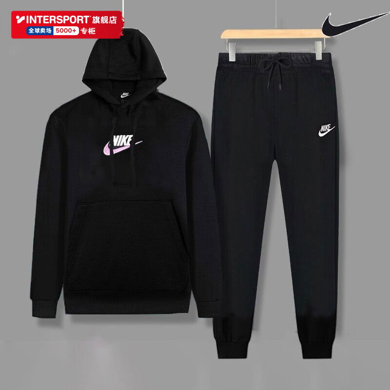 耐克运动套装男装2025秋冬新款运动服加绒卫衣长裤套头衫两件套潮